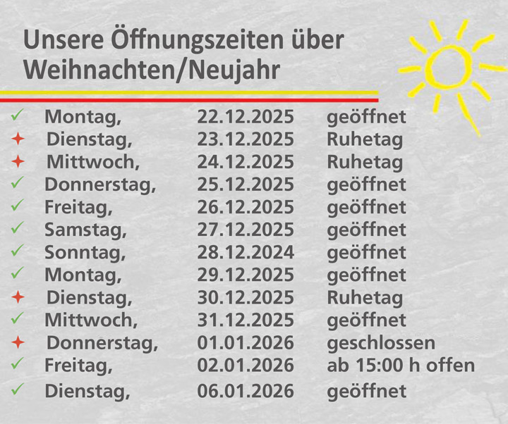 Am Montag, Donnerstag und Freitag (außer Feiertage) bieten wir Ihnen in der Zeit von 11:30 -14:30 Uhr einen Mittagstisch mit täglich zwei wechselnden Gerichten an.
